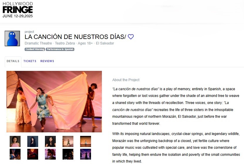 Página de La canción de nuestros días en Hollywood Fringe: https://www.hollywoodfringe.org/projects/12025?tab=details
